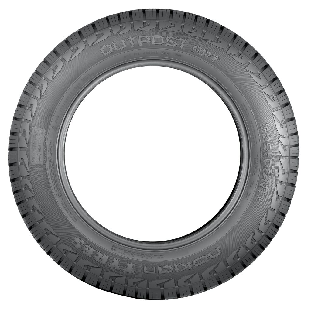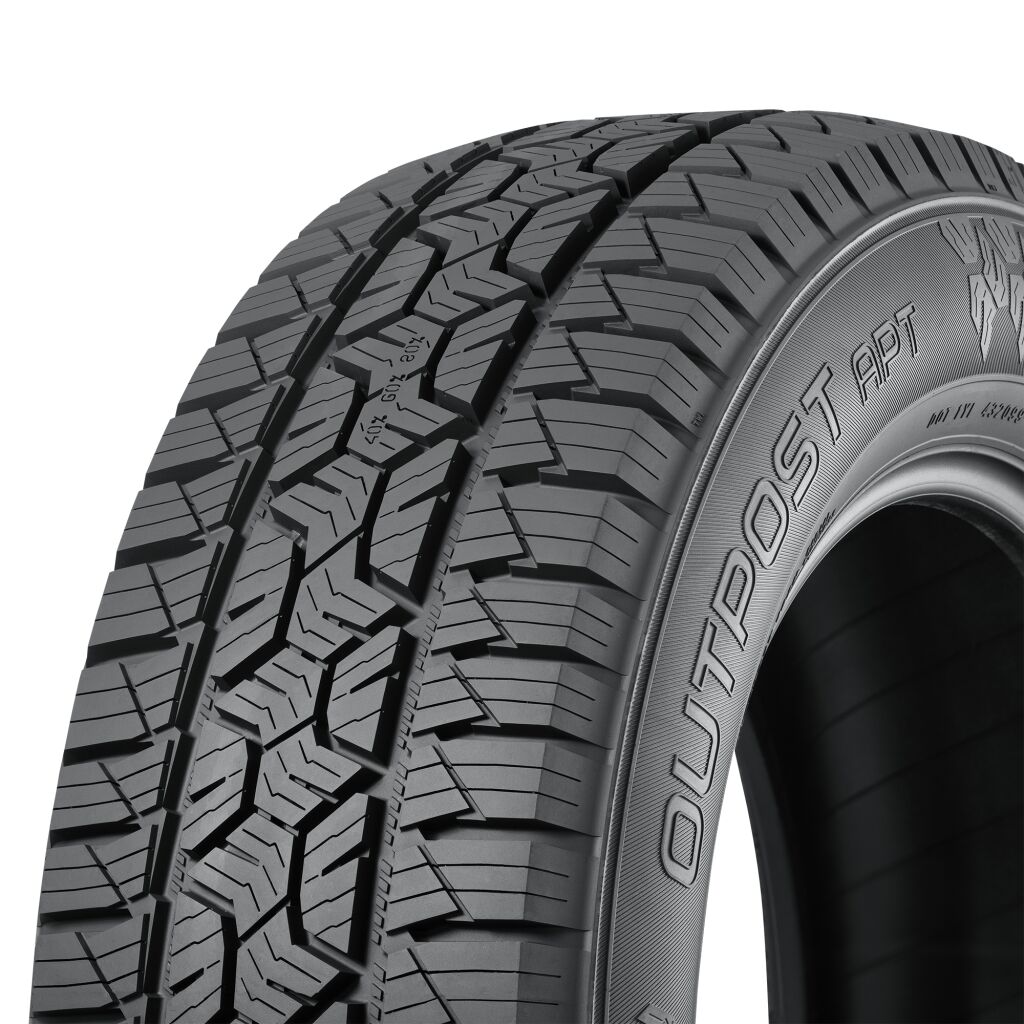 Le pneu Outpost™ APT de Nokian Tyres est un pneu polyvalent tout-terrain conçu pour les multisegments, les véhicules utilitaires sport et les petits camions légers. Le pneu Outpost APT réussit dans toutes les conditions, qu’il s’agisse d’escapades de fin de semaine ou de déplacements de tous les jours. Il est conçu pour les conducteurs qui recherchent l’aventure hors route autant que le confort lors de leurs déplacements quotidiens. L’Outpost APT est un pneu toutes conditions et porte le symbole du flocon de neige sur une montagne à trois sommets qui certifie qu’il convient à la conduite dans des conditions hivernales.